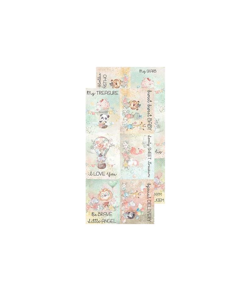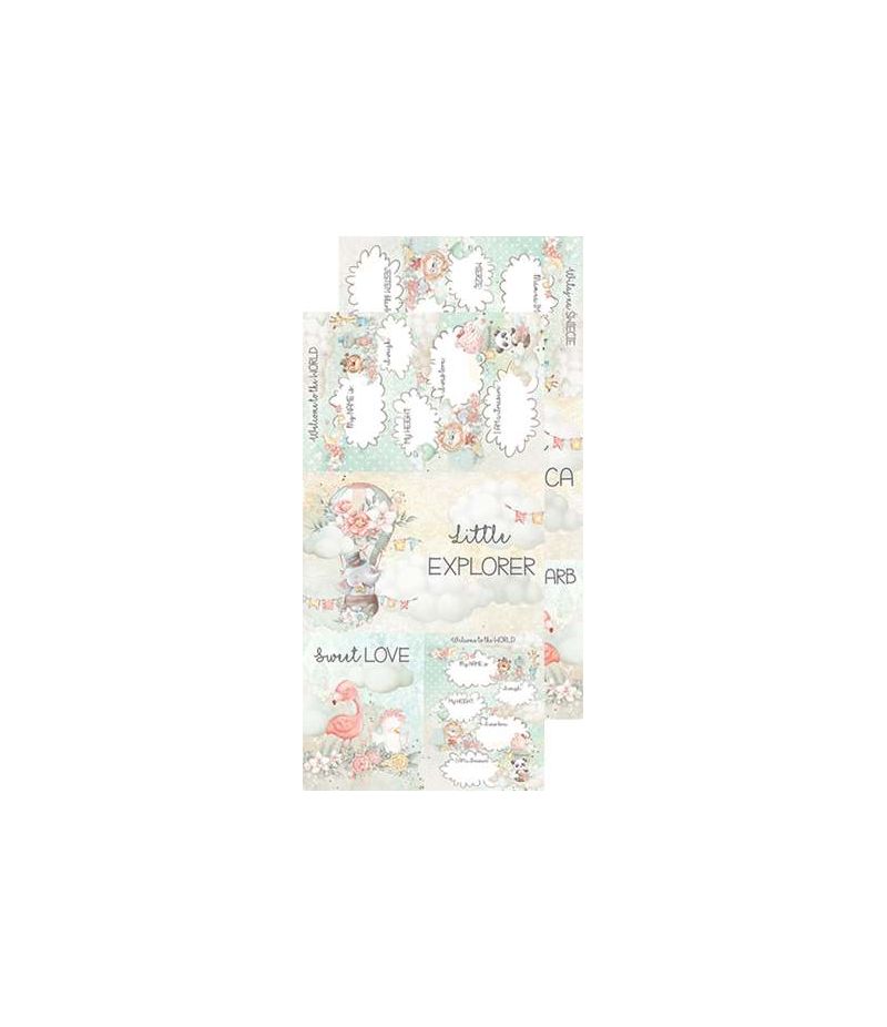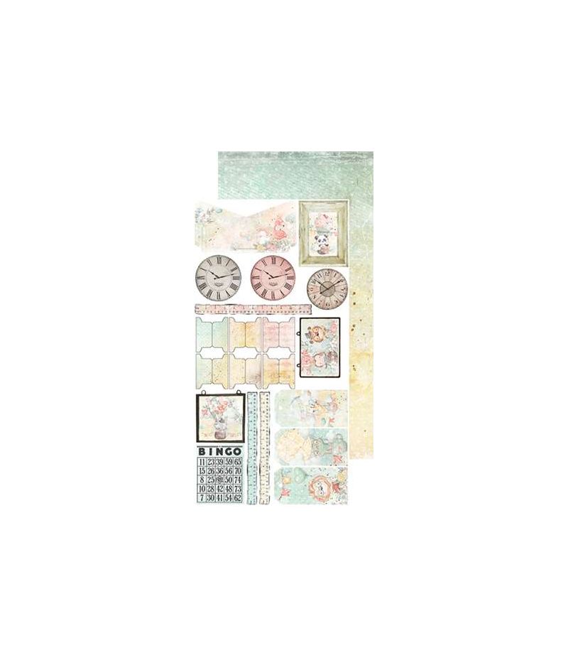 Bloc de 18 feuilles de motifs scrapbooking (pochette, étiquettes, tags...) à découper, de la marque Craft O Clock. Idéales pour réaliser un junk journal.