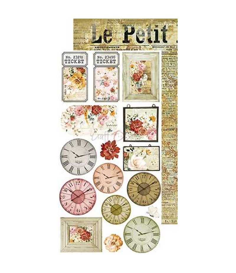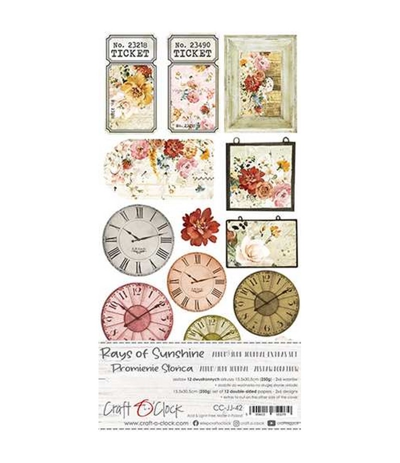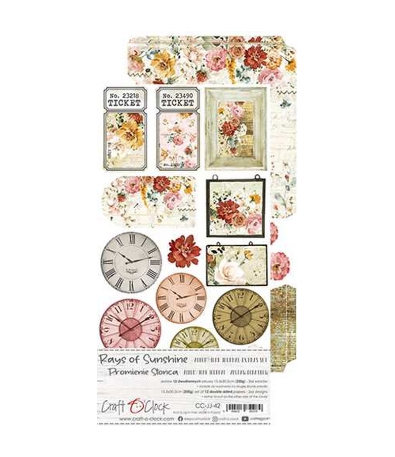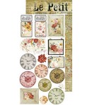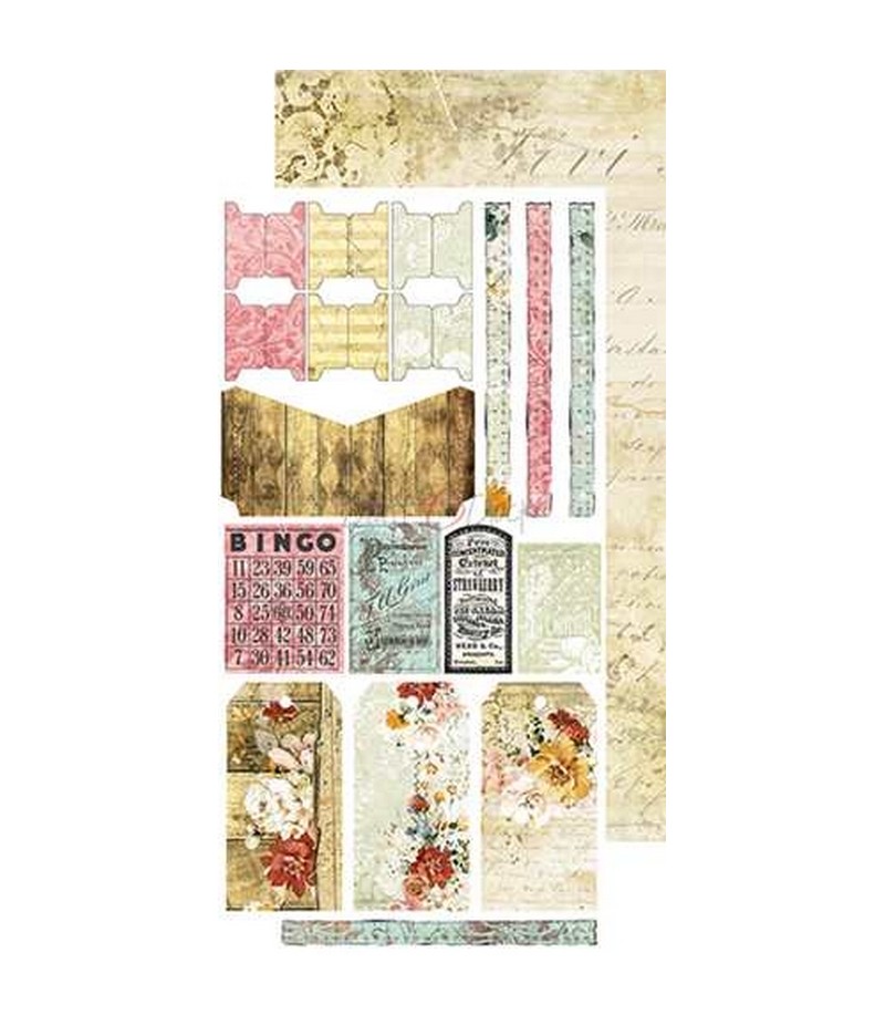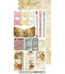 Bloc de 12 feuilles de motifs scrapbooking (pochette, étiquettes, tags...) à découper, de la marque Craft O Clock. Idéales pour réaliser un junk journal.