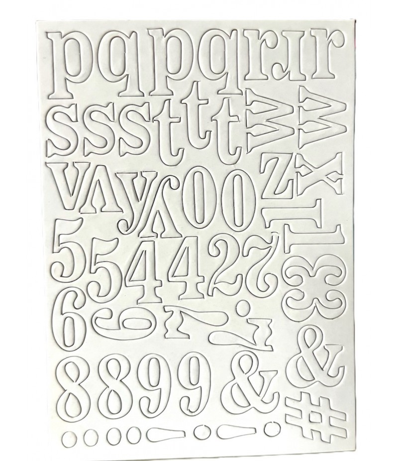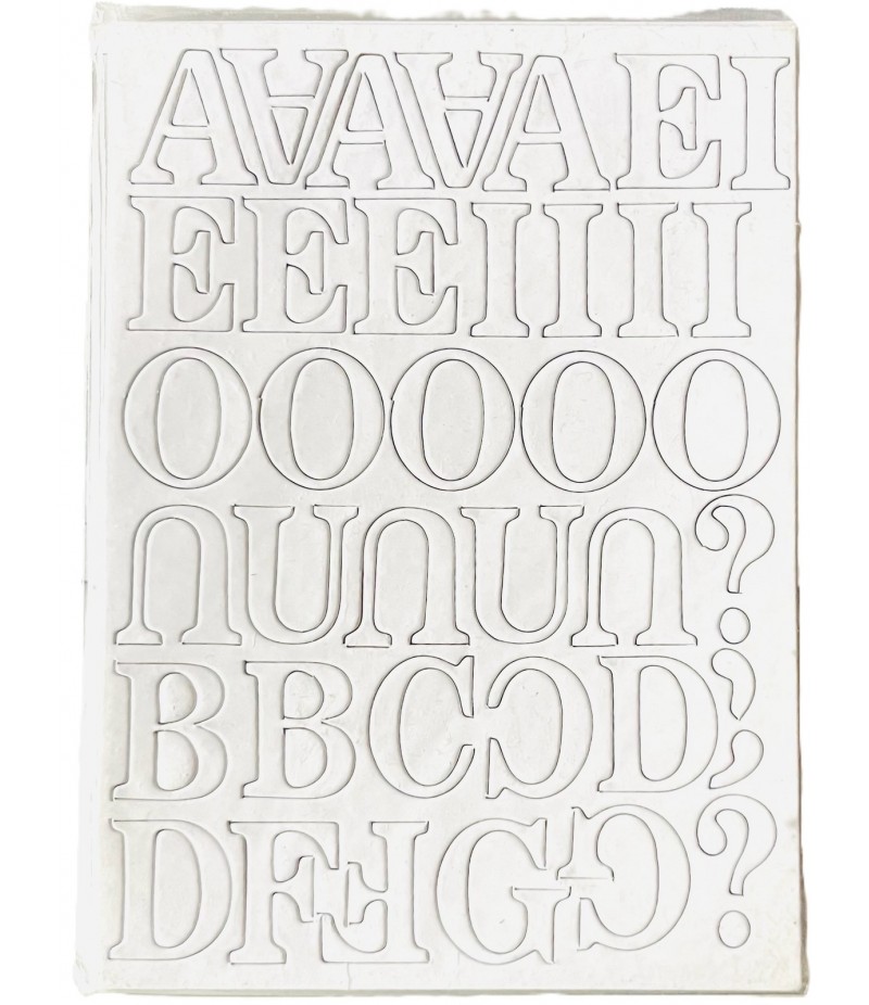4 Plaques de Lettres, Chiffres et Ponctuation en carton. Environ 144 pièces.