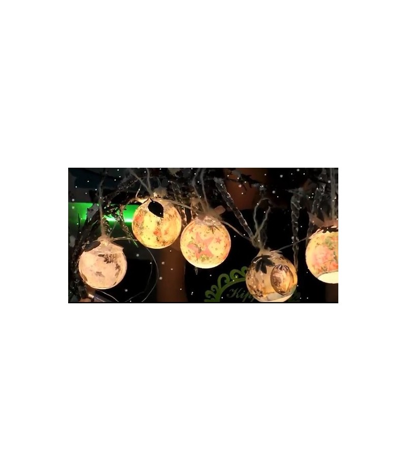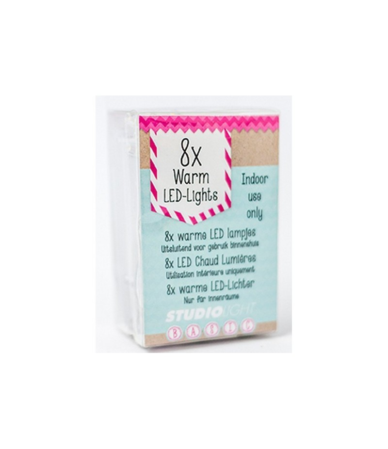 Guirlande lumineuse avec 8 petites ampoules LED. Fonctionne avec 3 piles AA/R06. Non incluses.