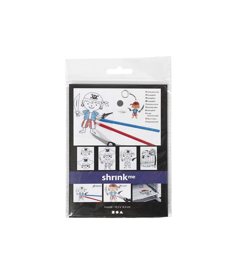 Feuilles de plastique dingue avec dessins pré-imprimés à décorer aux crayons de couleurs.