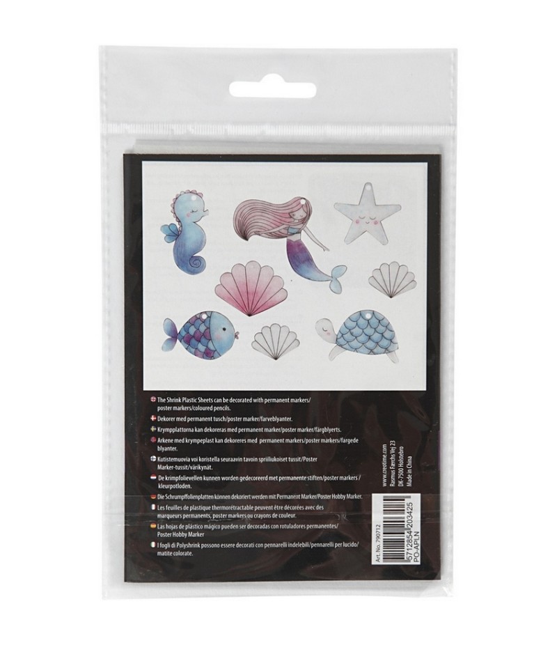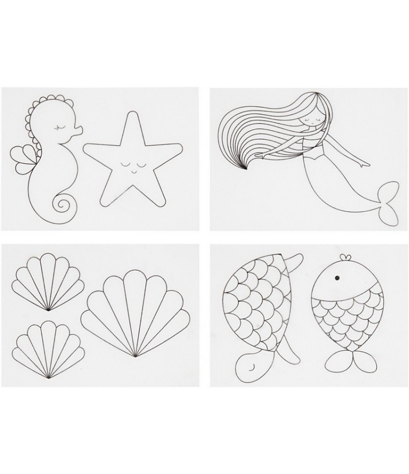 Feuilles de plastique dingue avec dessins pré-imprimés à décorer aux crayons de couleurs.