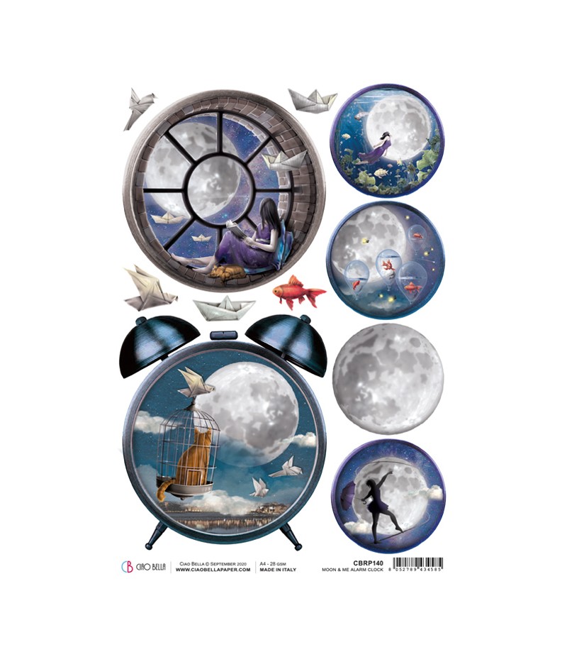 Papier de riz imprimé Ciao Bella 21 x 29.7 cm.