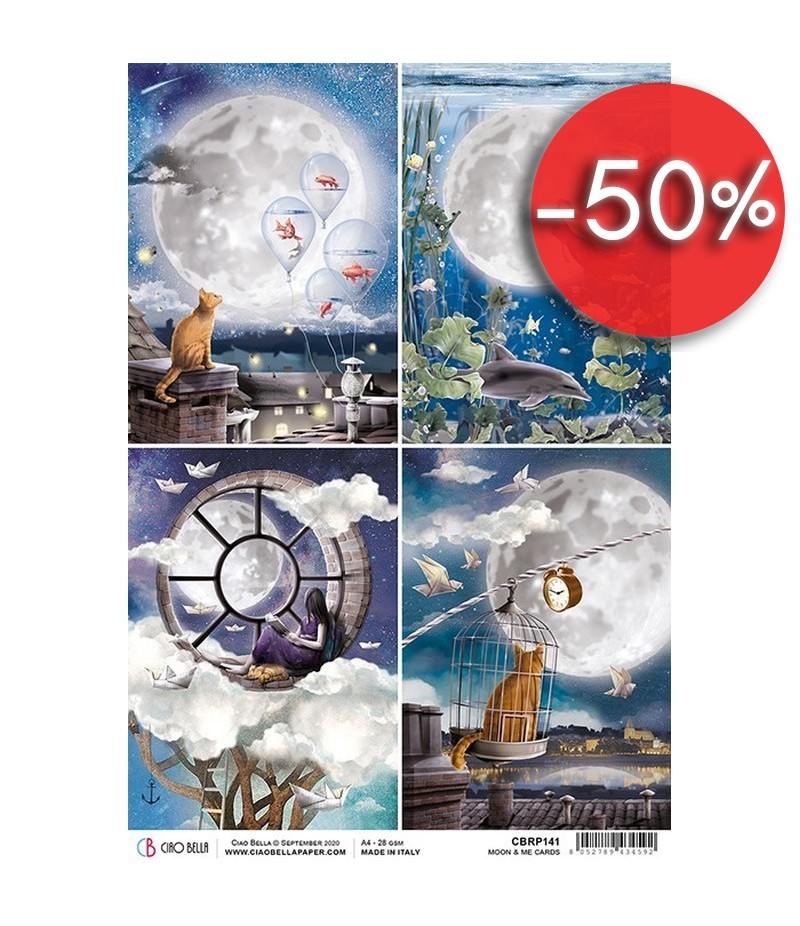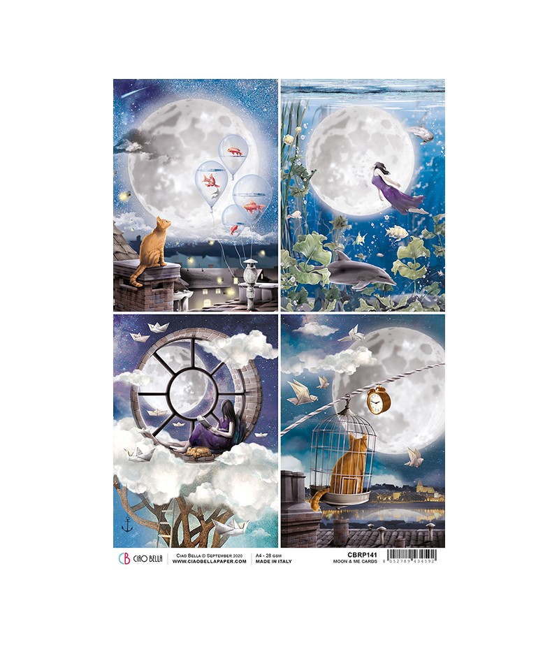 Papier de riz imprimé Ciao Bella 21 x 29.7 cm.