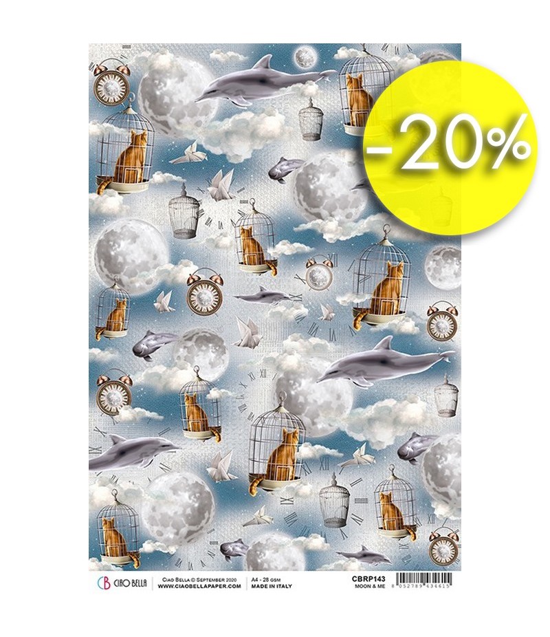 Papier de riz imprimé Ciao Bella 21 x 29.7 cm. CBRP143