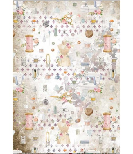 Papier de riz imprimé A4 - 21 x 29.7 cm - Collection ROMANTIC THREADS de STAMPERIA - DFSA4566