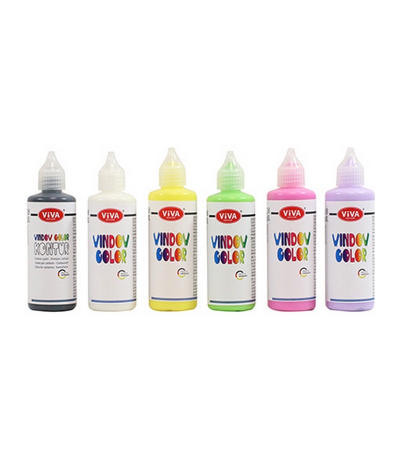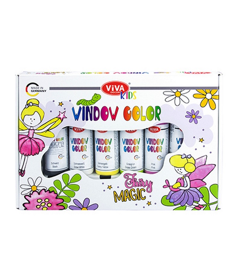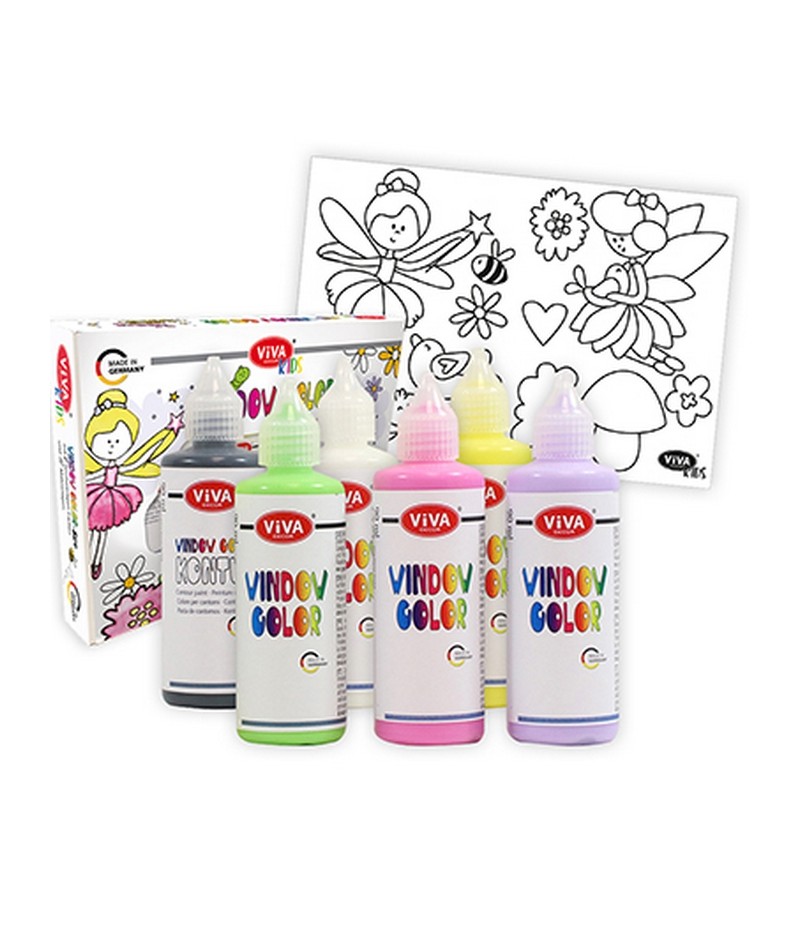 Kit de peintures window color pour réaliser des dessins repositionnables. Idéal pour décorer toutes les surfaces lisses, telles que les fenêtres, le verre, les miroirs...
