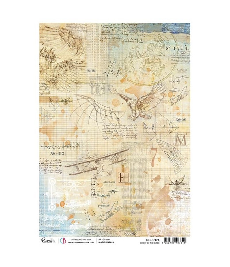 Papier de riz imprimé Ciao Bella 21 x 29.7 cm. CBRP174