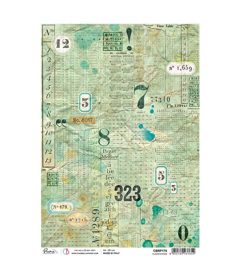 Papier de riz imprimé Ciao Bella 21 x 29.7 cm. Collection SIGN OF THE TIME.