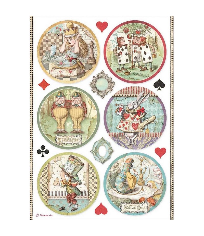 Papier de riz imprimé A4 - 21 x 29.7 cm - Collection ALICE de STAMPERIA - DFSA4606