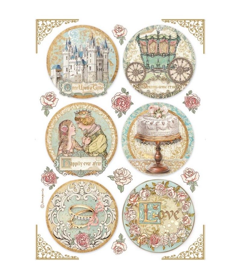 Papier de riz imprimé A4 - 21 x 29.7 cm - Collection SLEEPING BEAUTY de STAMPERIA - DFSA4576