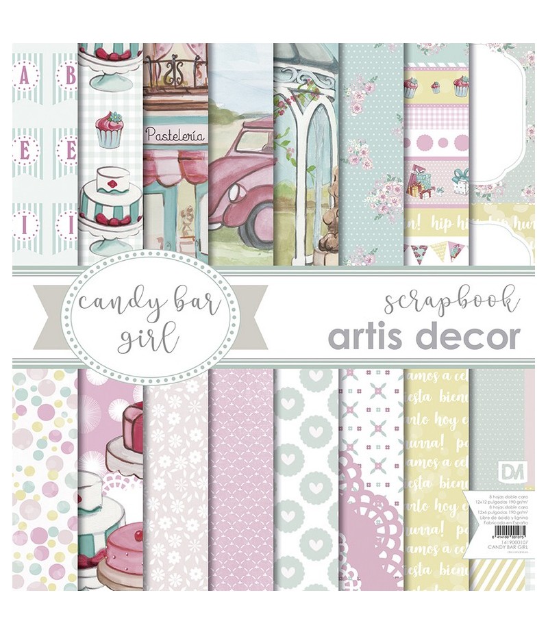 Bloc de 8 feuilles de papier double face (2 motifs) sans acide. CANDY BAR GIRL de ARTIS DECOR. 1419000107