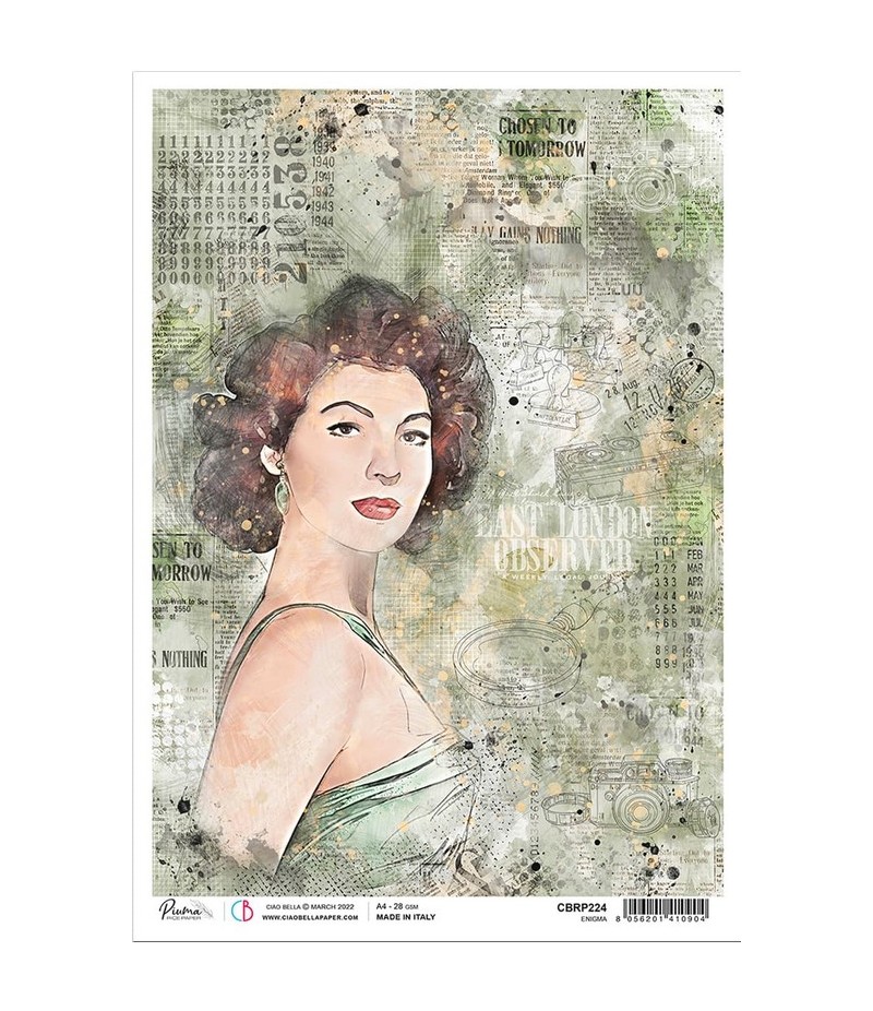 Papier de riz imprimé Ciao Bella 21 x 29.7 cm. Collection ENIGMA.