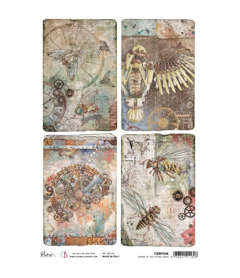 Papier de riz imprimé Ciao Bella 21 x 29.7 cm. Collection ENGINE TO THE FUTURE.