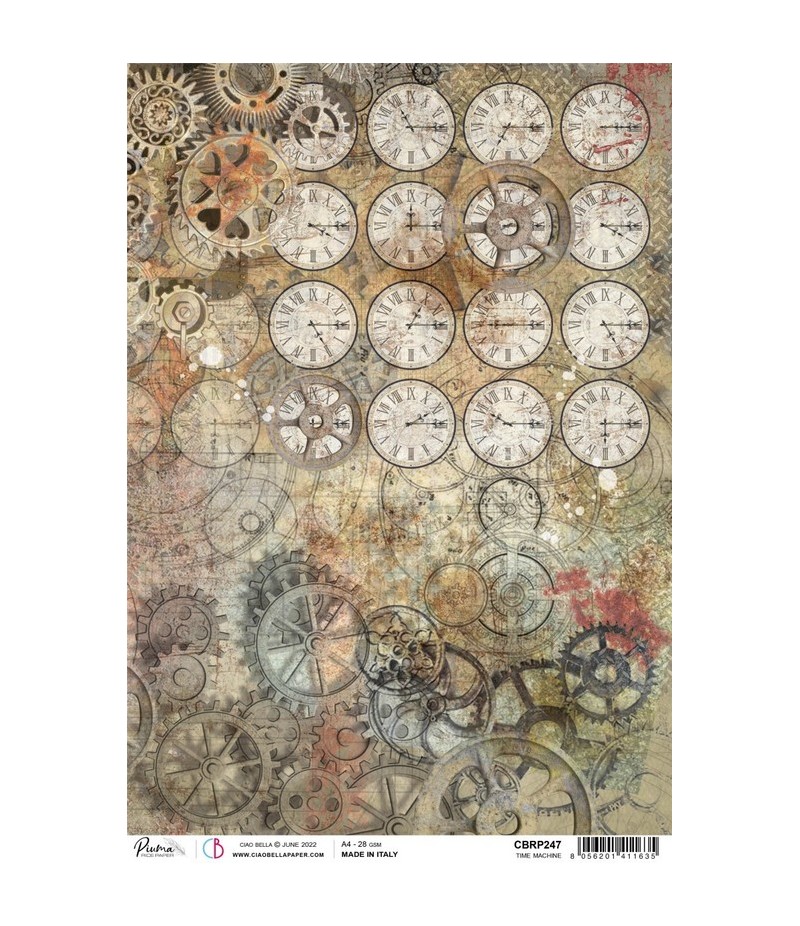Papier de riz imprimé Ciao Bella 21 x 29.7 cm. Collection ENGINE TO THE FUTURE.