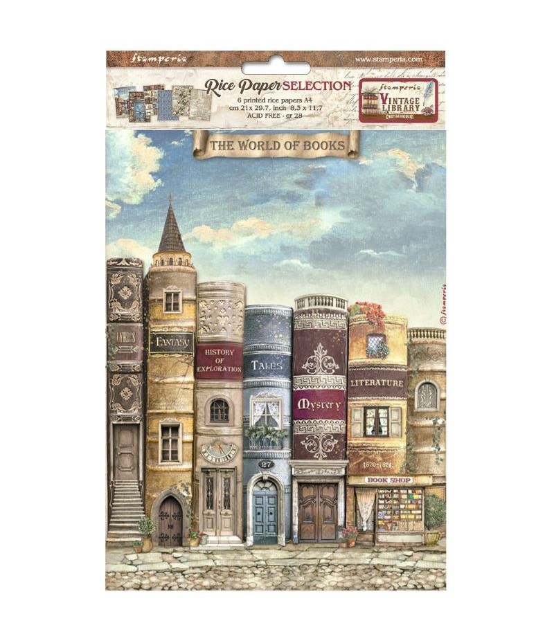 6 Papiers de riz imprimés A4 - 21 x 29.7 cm - Collection VINTAGE LIBRARY by Cristina RADOVAN de STAMPERIA. DFSA4XVL