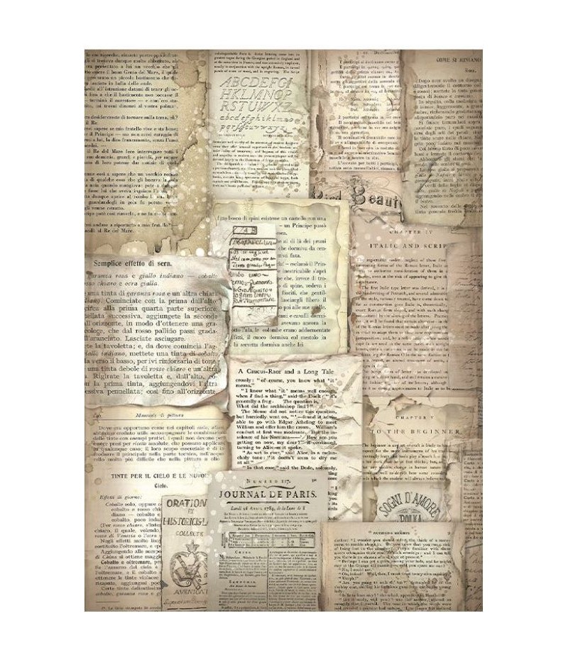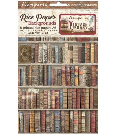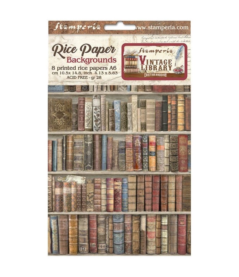 8 Papiers de riz imprimés A6 - 10.5 x 14.8 cm - Collection VINTAGE LIBRARY by Cristina RADOVAN de STAMPERIA. DFSAK6001