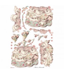 Le papier de riz est un papier texturé, imprimé, utilisé pour la décoration de tous supports (bois, carton, zinc, verre...). Il est plus épais et donc plus résistant qu'une serviette en papier et conserve les qualités de transparence.