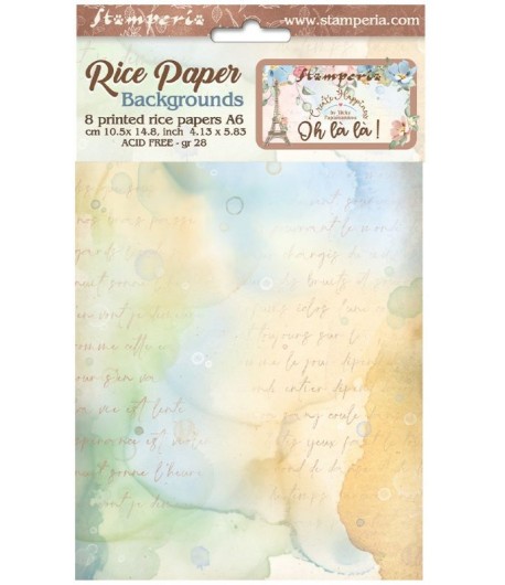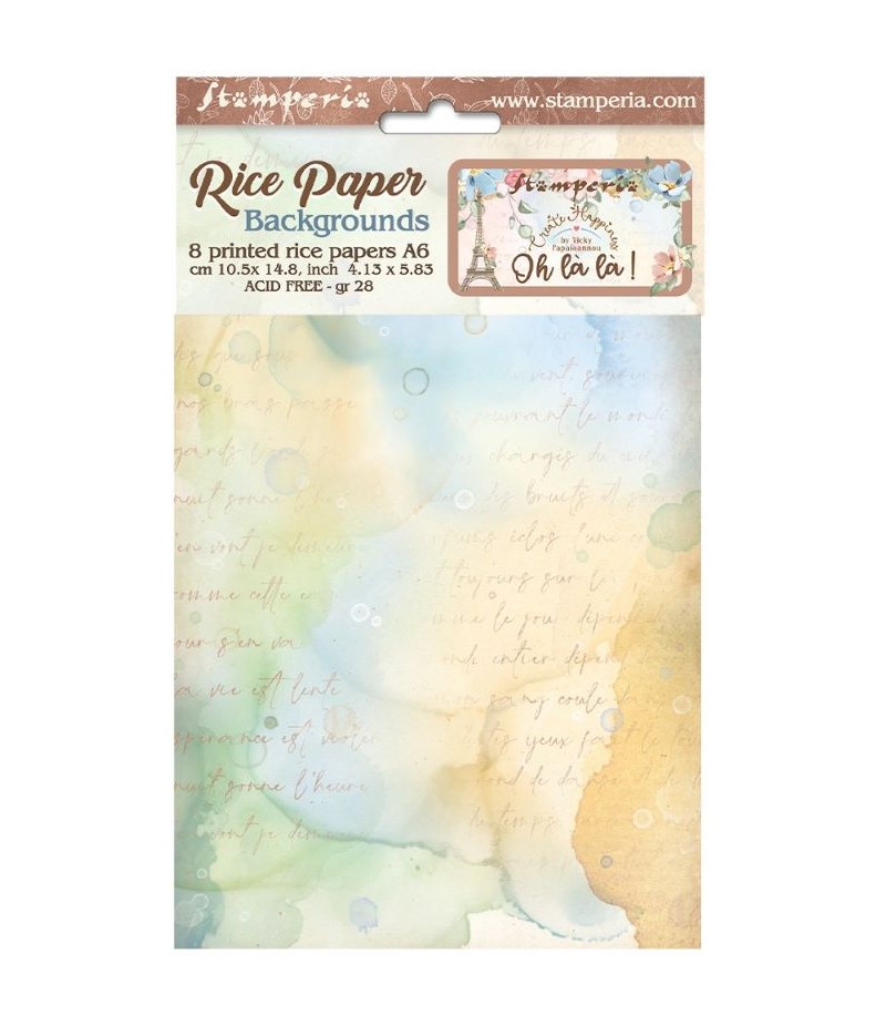 8 Papiers de riz imprimés A6 - 10.5 x 14.8 cm - Collection CREATE HAPPINESS OH LA LA by Vicky PAPAIOANNOU de STAMPERIA. DFSAK6002