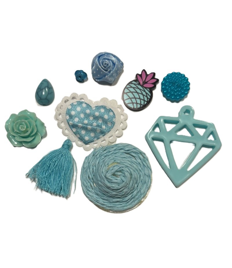 Lot de 10 embellissements en plastique, bois, tissus, résine...