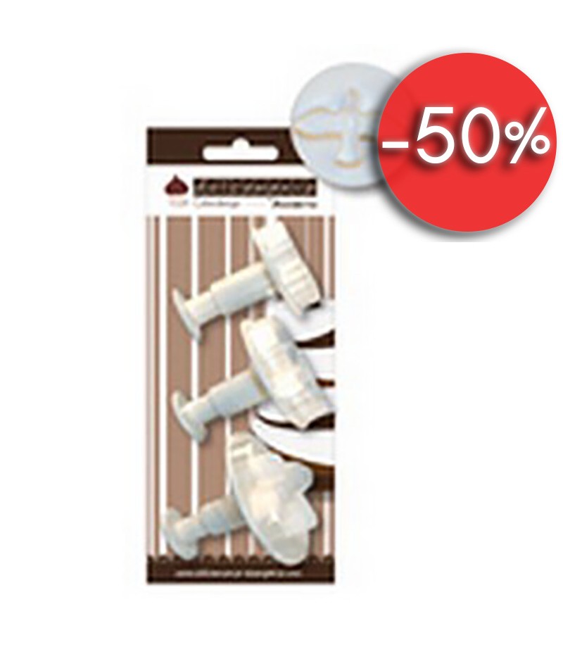 Set de 3 emporte-pièces "embosseur" en plastique avec bouton poussoir pour embosser et extraire vos découpes plus facilement.