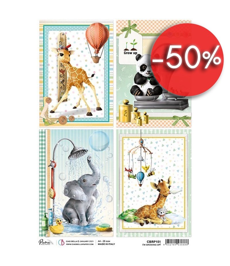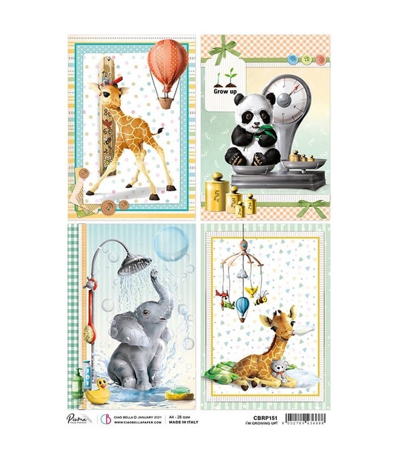 Papier de riz imprimé Ciao Bella 21 x 29.7 cm. Collection MY FIRST YEAR.