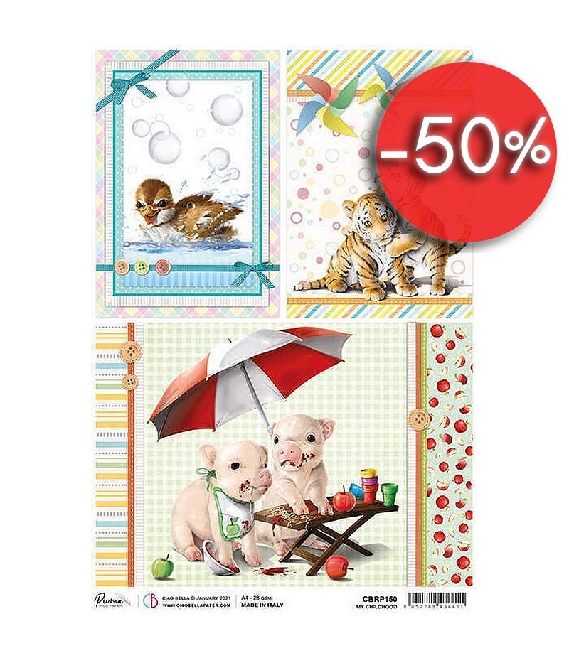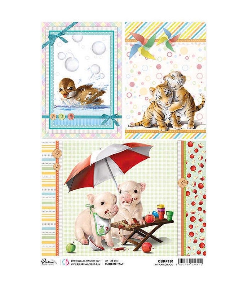 Papier de riz imprimé Ciao Bella 21 x 29.7 cm. Collection MY FIRST YEAR.