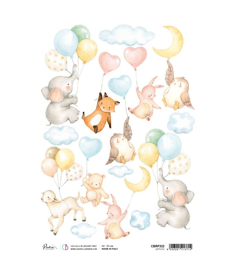 Papier de riz imprimé Ciao Bella 21 x 29.7 cm. Collection MY TINY WORLD.