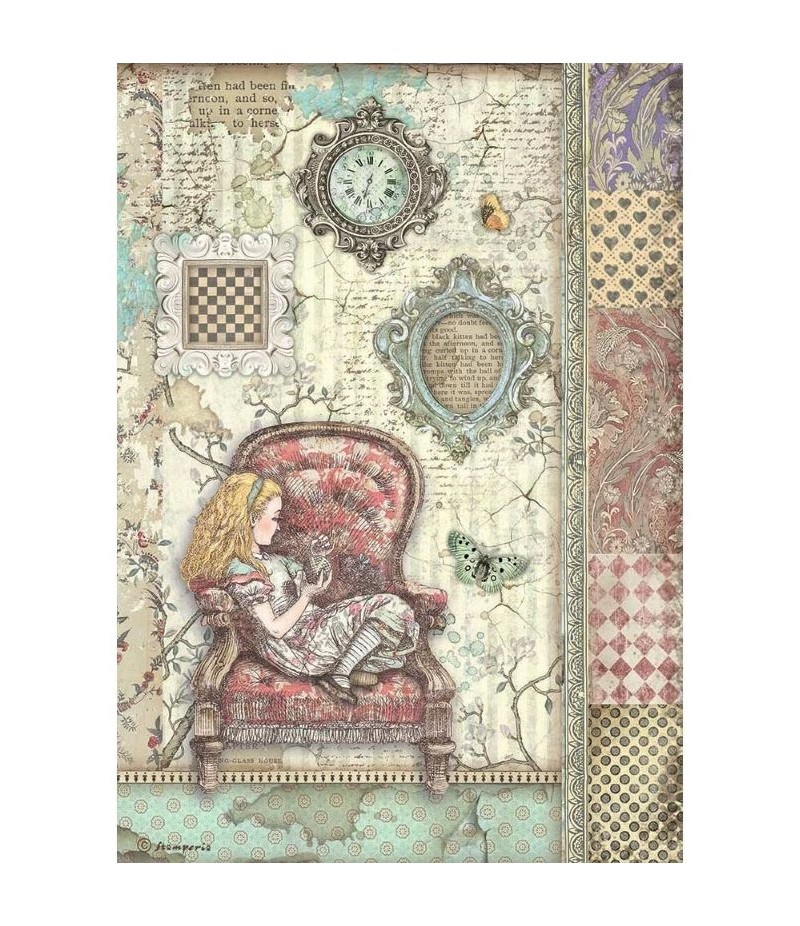 Papier de riz imprimé A4 - 21 x 29.7 cm - Collection ALICE FOREVER de STAMPERIA. DFSA4765