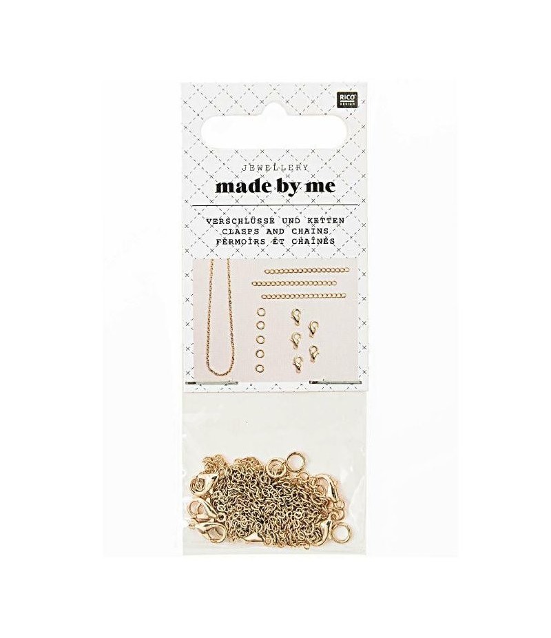 Sachet contenant 14 pièces en métal argenté pour bijoux composé de 5 fermoirs carabiniers, 5 anneaux, 1 m de chaîne et 3 chaînes d'extension de 5 cm.