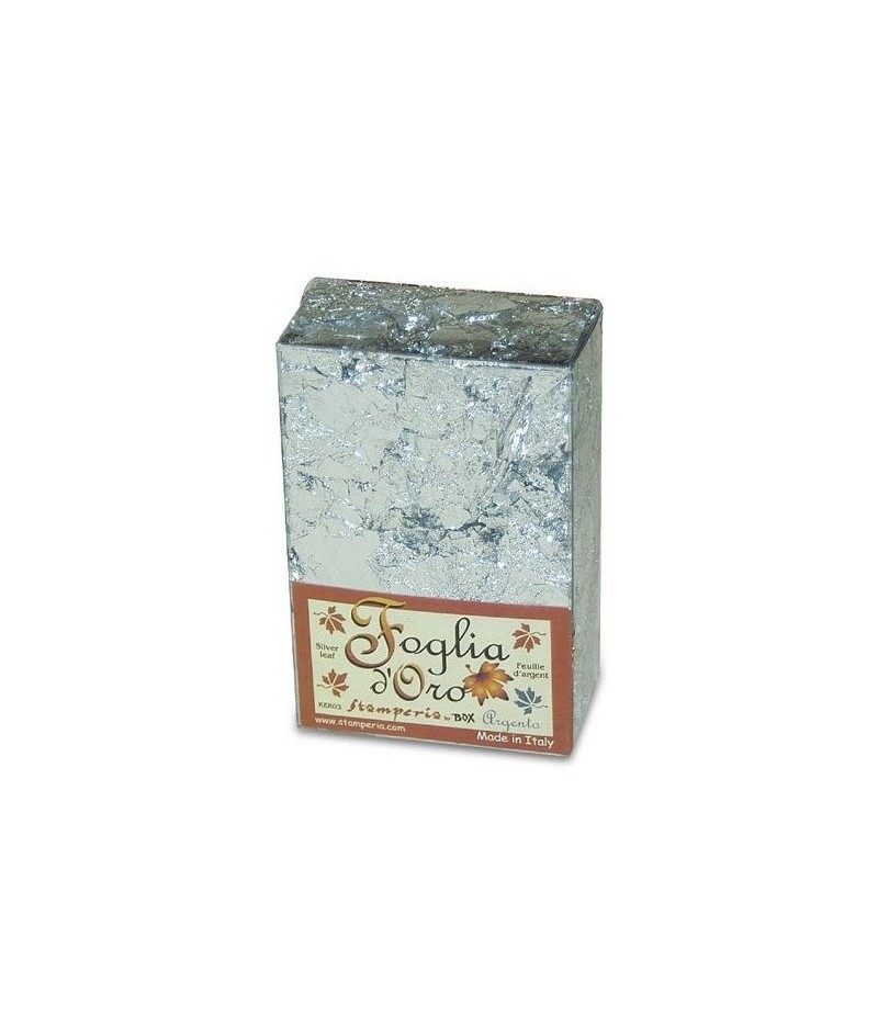 Afin d'obtenir de belles dorures sur vos créations, appliquez une couche de colle à dorure avec un pinceau, laissez sécher, et avec un pinceau un peu sec, posez des morceaux de feuilles de dorure. Effet garanti ! Vous pouvez couvrir une surface d'environ 50x70cm avec une boite.