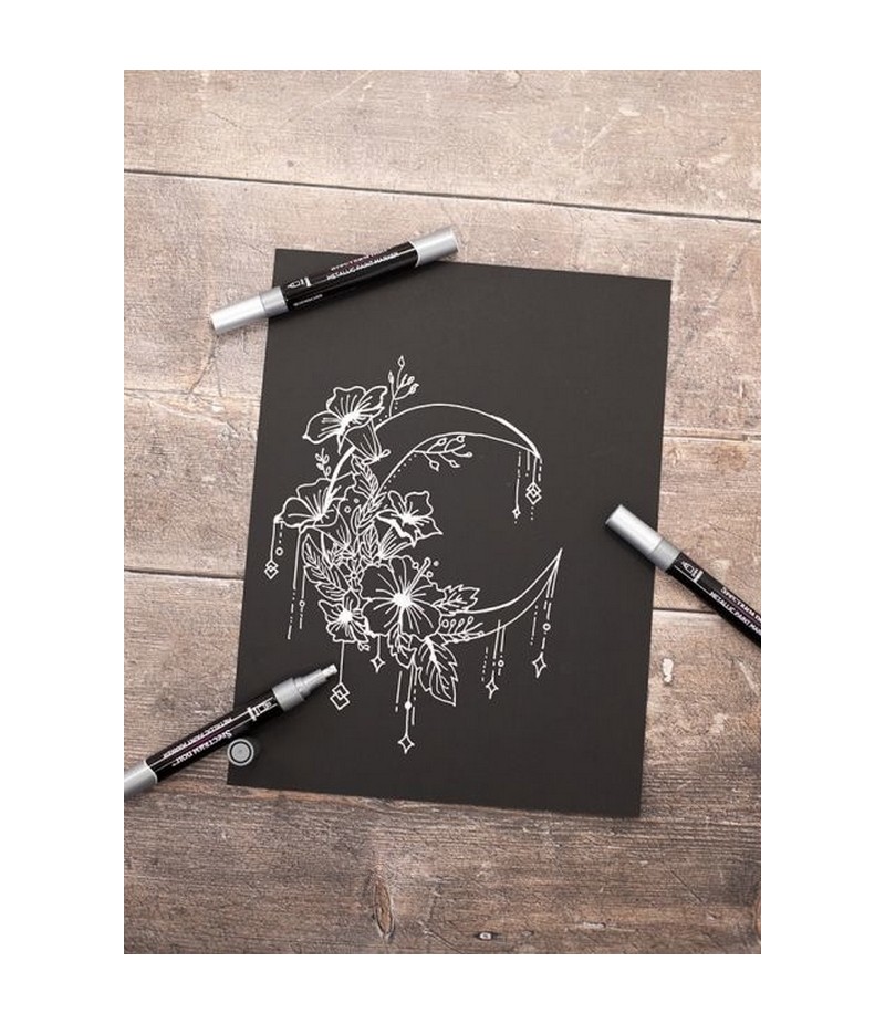 Pointe superfine (0.7 mm), pointe biseautée (4 mm) et pointe fine (3 mm). Peut être utilisé sur une variété de surfaces (bois, métal, plastique, verre, céramique, toile, papier, carton...).