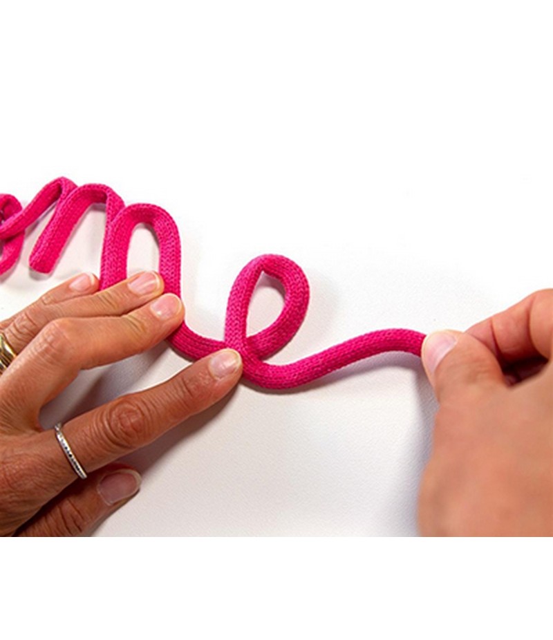 Le Tubecord est un cordon tubulaire aussi appelé Tricotin. En y insérant un fil en aluminium, il peut être façonné à volonté pour créer des lettrages et des décorations. Pour les formes petites et fines, le fil de 1 mm convient, pour les formes et le lettrage plus grands et plus stables, le fil de 2 mm est plus recommandé.