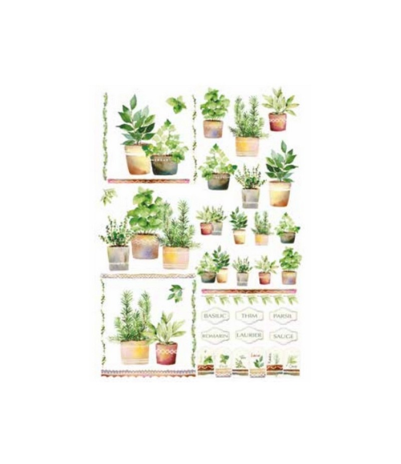 Le papier de riz est un papier texturé, imprimé, utilisé pour la décoration de tous supports (bois, carton, zinc, verre...). Il est plus épais et donc plus résistant qu'une serviette en papier et conserve les qualités de transparence.