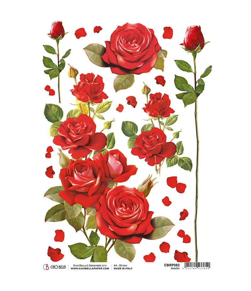 Papier de riz imprimé Ciao Bella 21 x 29.7 cm. CBRP082 PASION
