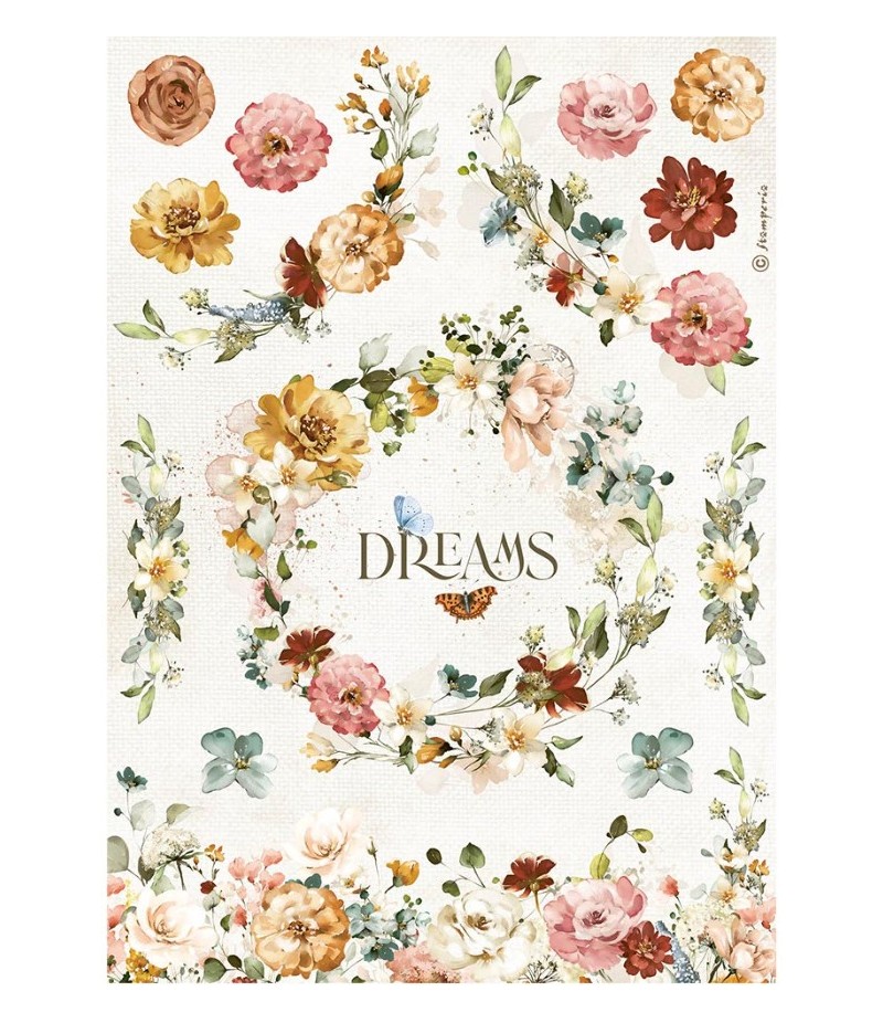 Papier de riz imprimé A4 - 21 x 29.7 cm - Collection GARDEN OF PROMISES de STAMPERIA - DFSA4693