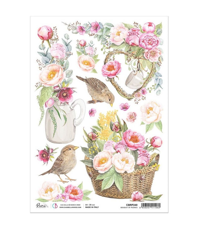 Papier de riz imprimé Ciao Bella 21 x 29.7 cm. Collection SPARROW HILL.