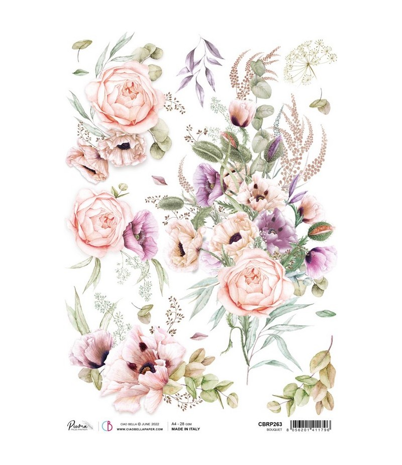 Papier de riz imprimé Ciao Bella 21 x 29.7 cm. CBRP263.