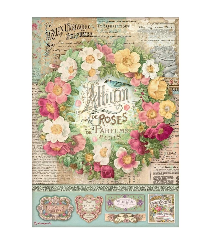 Papier de riz imprimé A4 - 21 x 29.7 cm - Collection ROSE PARFUM by Dorota KOTOWICZ de STAMPERIA. DFSA4734