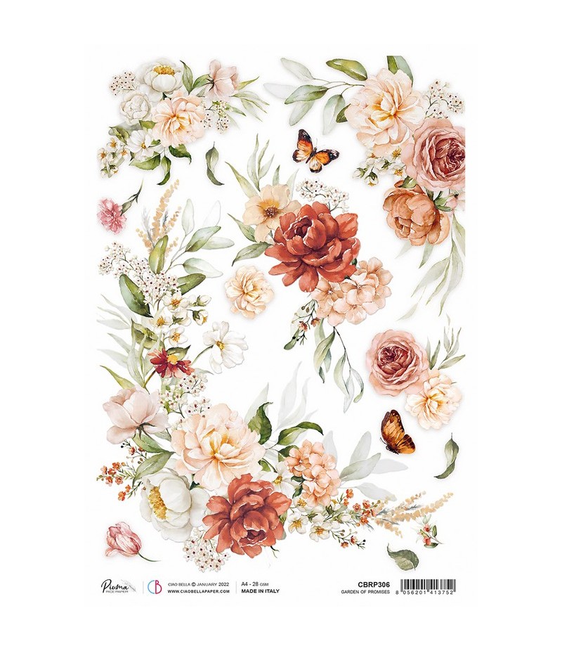 Papier de riz imprimé Ciao Bella 21 x 29.7 cm. CBRP306.
