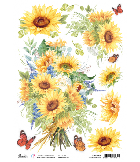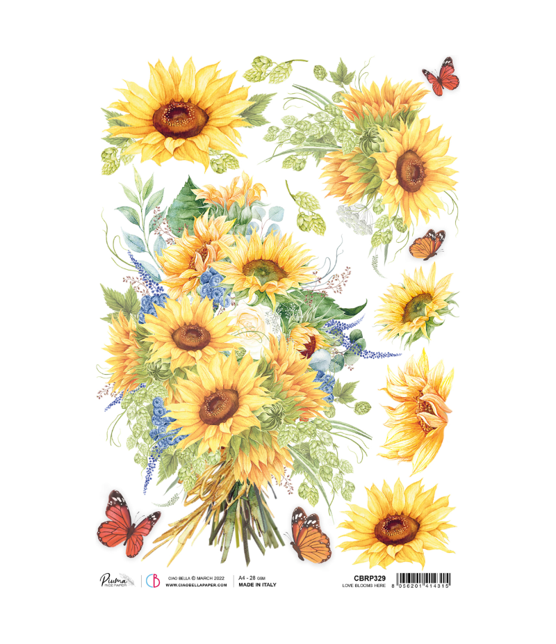 Papier de riz imprimé Ciao Bella 21 x 29.7 cm. Collection FARMHOUSE GARDEN.