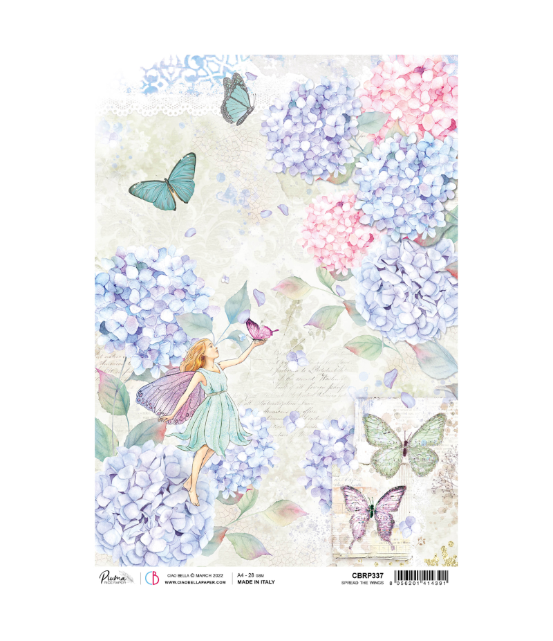 Papier de riz imprimé Ciao Bella 21 x 29.7 cm. Collection ENCHANTED LAND.