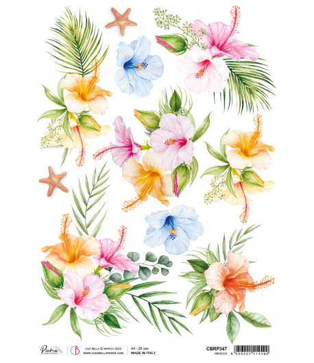 Papier de riz imprimé Ciao Bella 21 x 29.7 cm. Collection SUMMER BREEZE.