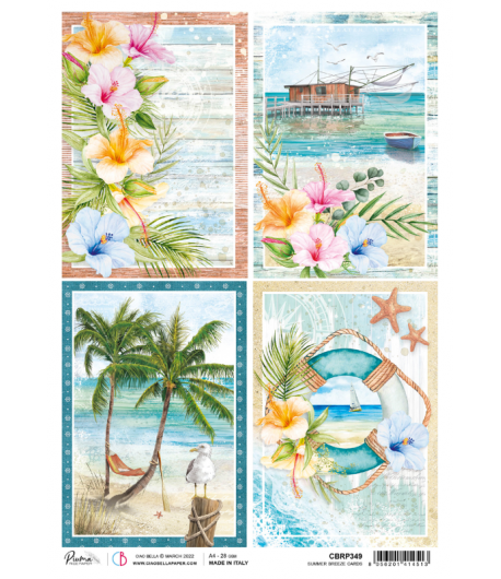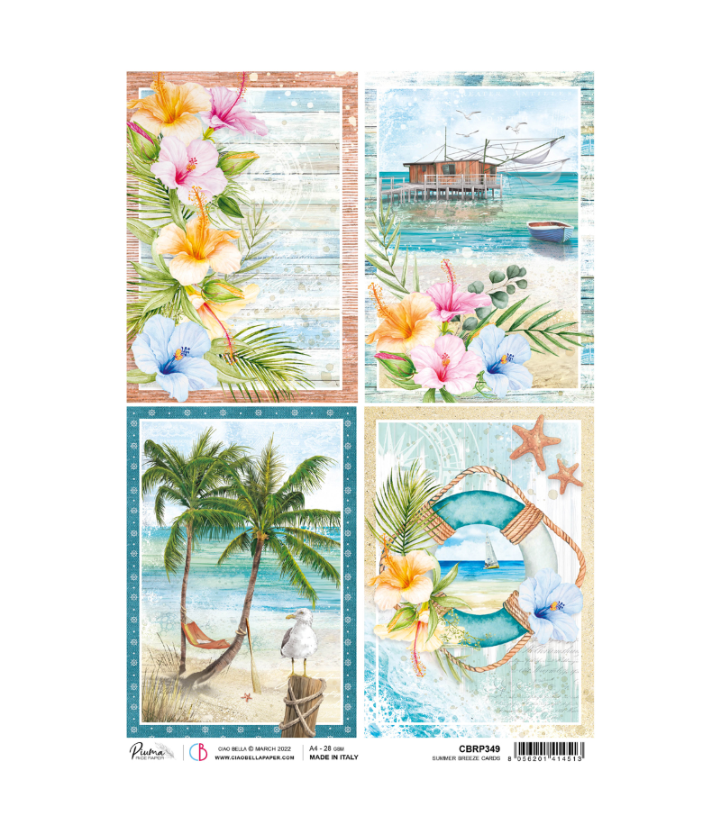 Papier de riz imprimé Ciao Bella 21 x 29.7 cm. Collection SUMMER BREEZE.