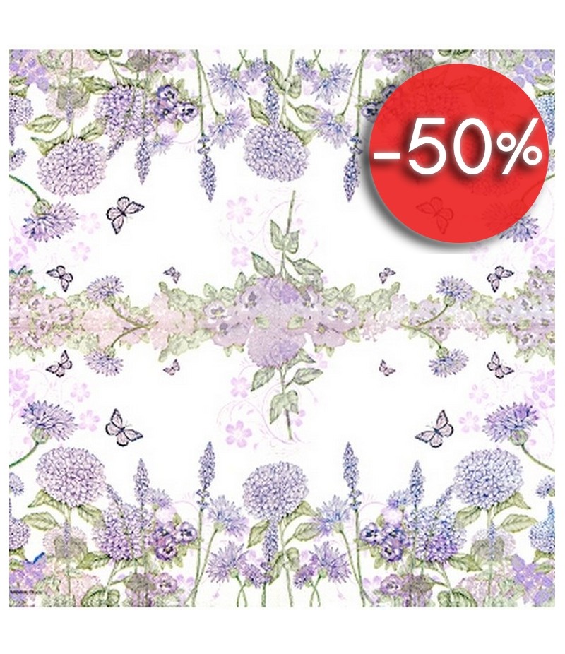 SERVIETTE FLEURS MAUVES ET PAPILLONS