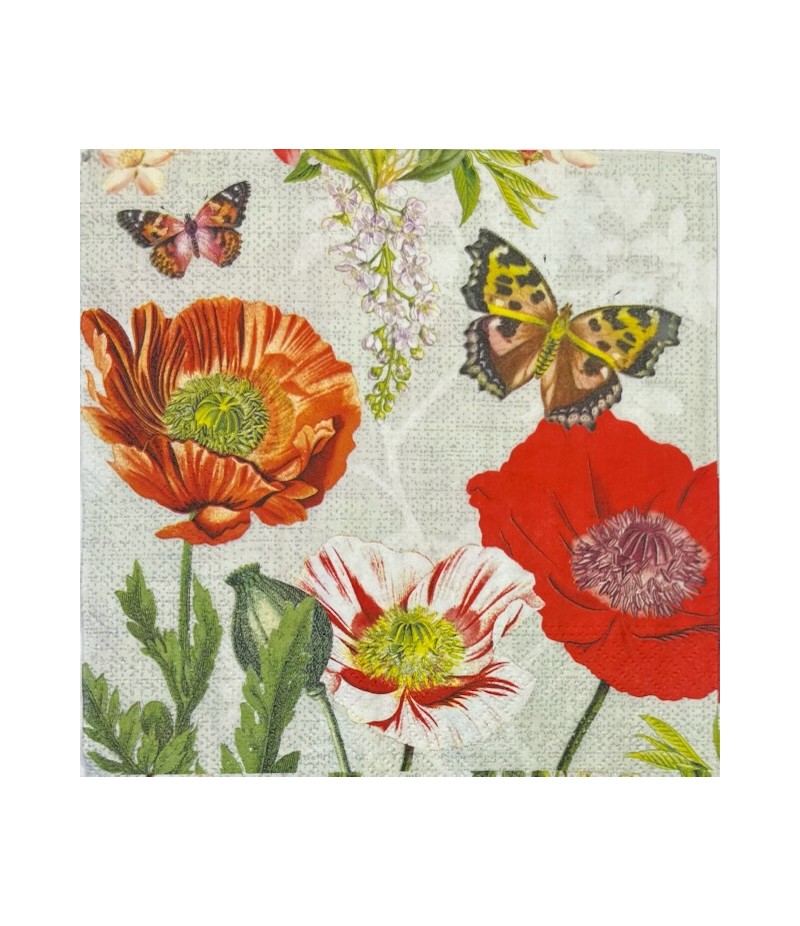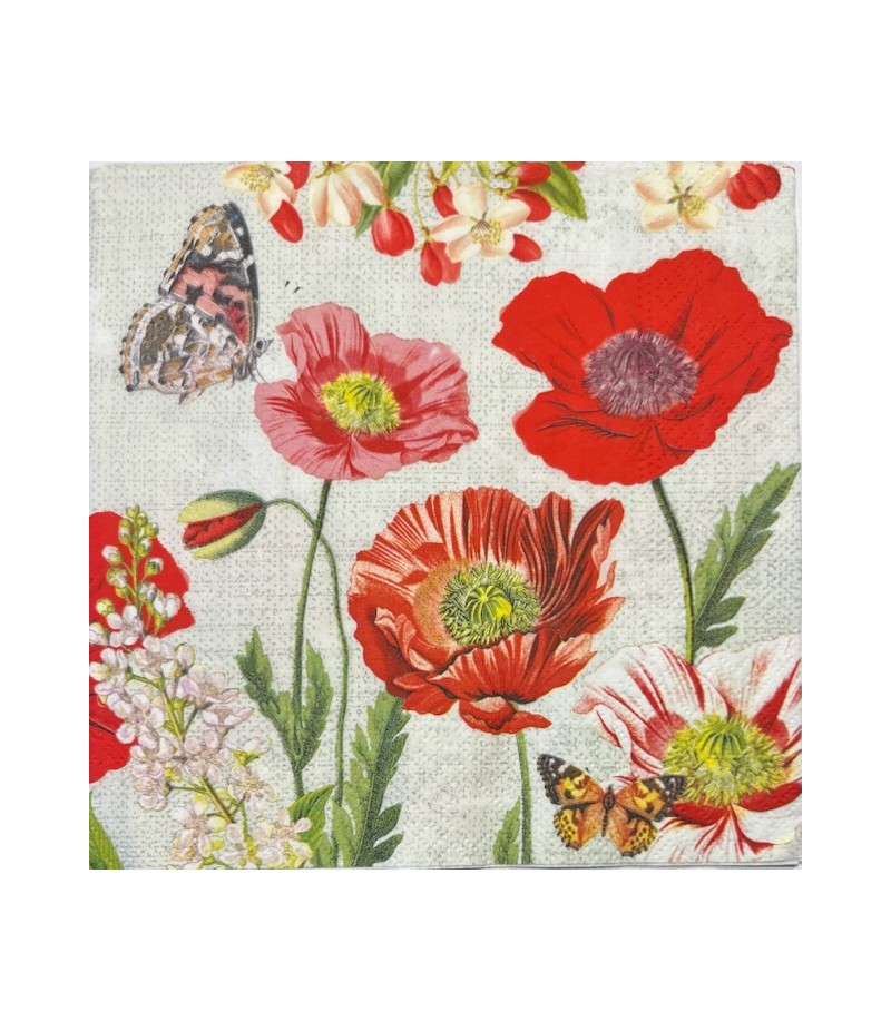 SERVIETTE COQUELICOTS ET PAPILLONS