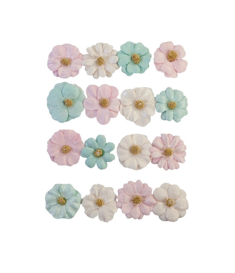 Lot de 16 fleurs nacrées en papier de la marque Prima Marketing, collection "With Love".