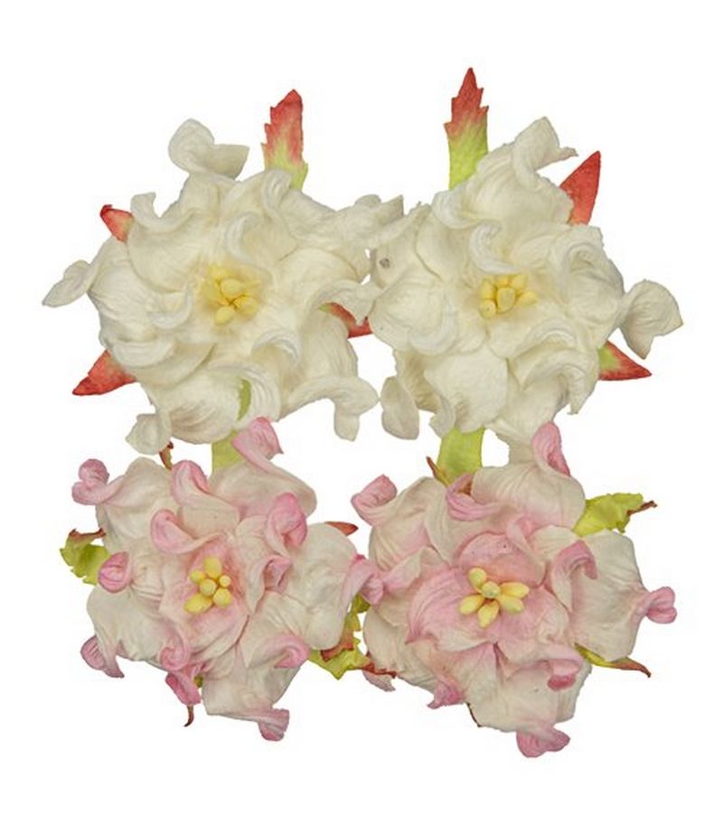 FLEURS GARDENIAS 4.5 CM x 4 - BLANC / ROSE