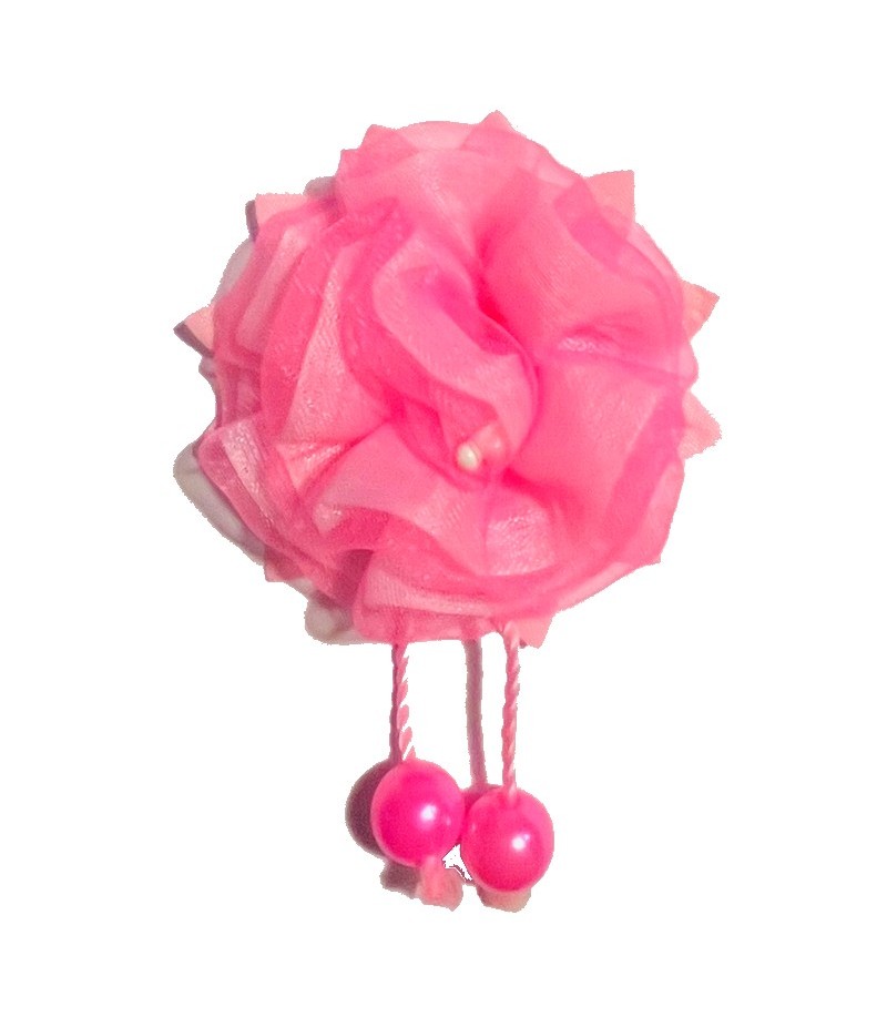 FLEUR EN TISSU AVEC PERLES - ROSE 5X7.5CM