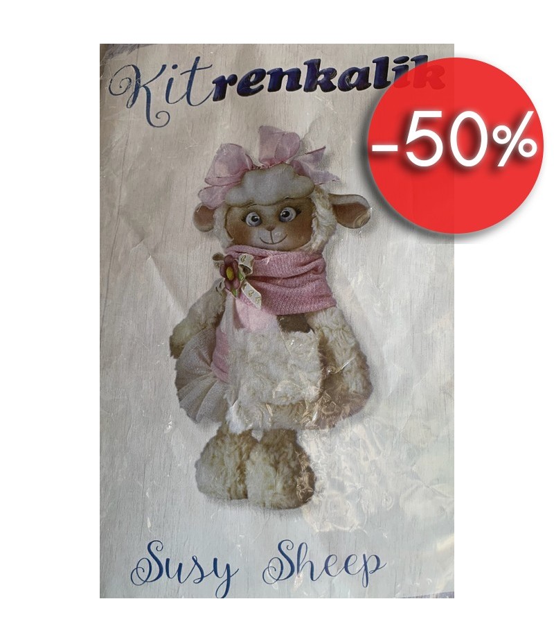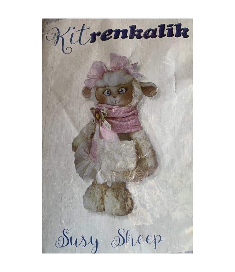 Kit pour réaliser un petit mouton en feutrine. Le kit comprend la feutrine, du tissu, du rembourrage, des oeufs en polystyrène, une tige en bois, une en métal, de la mousse avec le visage et un pas à pas.